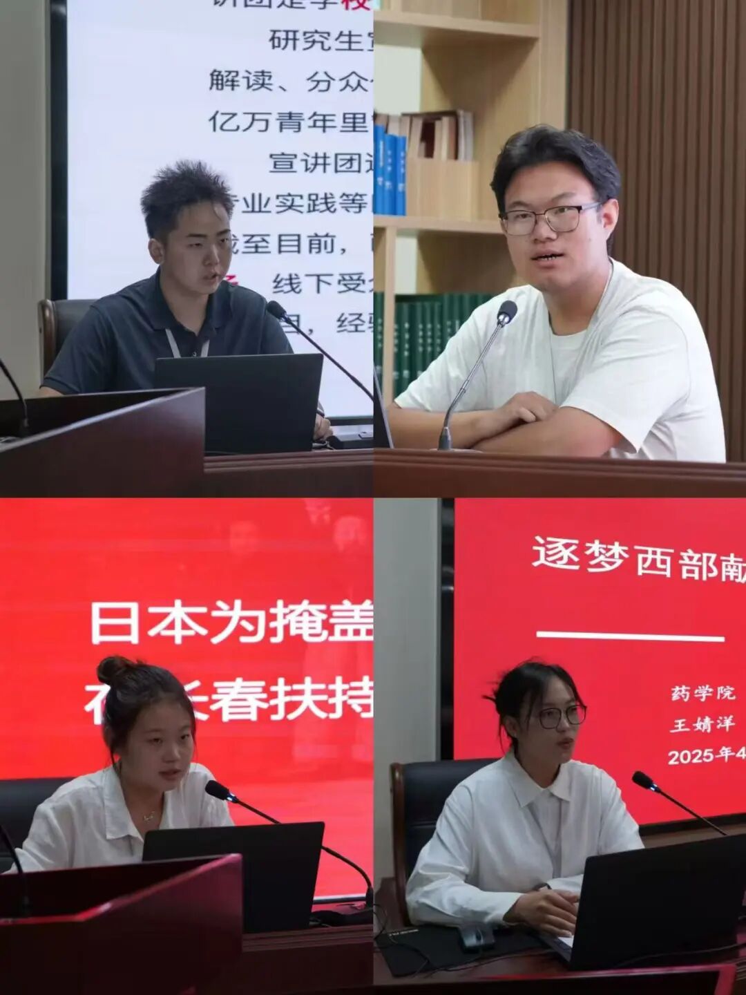 在示范宣讲环节中,求是研究生宣讲团成员关屹介绍了宣讲团的发展历程与主要成果。讲师庞佳诚以《聆听冀中音韵守护燕赵根脉》为题,讲述地域文化与河北民乐之间的互动和发展,呼吁在场听众关注民间优秀传统文化;讲师魏宇琦以《抗战精神:从历史走向未来》为题,阐释民族精神的时代价值;讲师王婧洋以《逐梦西部献青春服务基层显担当》为题,展现青年学子服务基层的责任与奉献。三场宣讲主题鲜明、感染力强,赢得阵阵掌声。