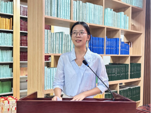 2023级中国近现代史基本问题研究专业硕士研究生、河北大学“求是”宣讲团副团长陈莹作为老生代表发言。
