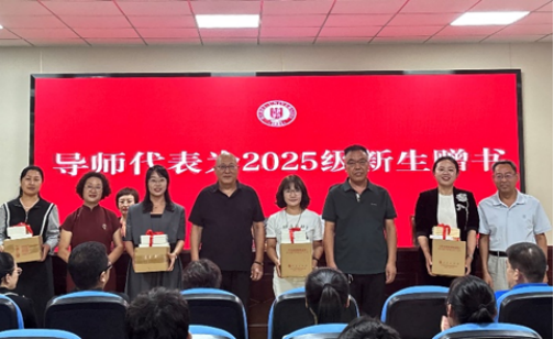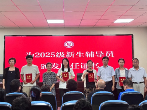 学院领导为2025级新生辅导员颁发聘任证书。2025级新生为导师代表献花,表达对学院全体教师的祝福。此外,导师为2025级新生赠书,勉励同学们以远大志向为帆,以勤学创新为桨,在求学航程中乘风破浪,书写青春华章!