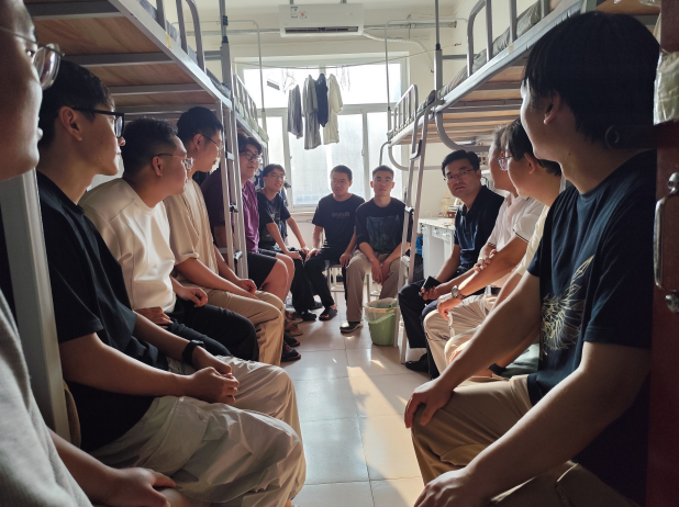 走访过程中,学院领导们先后走进多个新生寝室,与同学们展开亲切交谈。每到一间宿舍,领导们都悉心与学生沟通,了解其入校后在饮食、住宿、生活习惯等方面的实际情况;主动倾听新生诉求;详细询问是否存在学习衔接、生活保障等方面的困难。