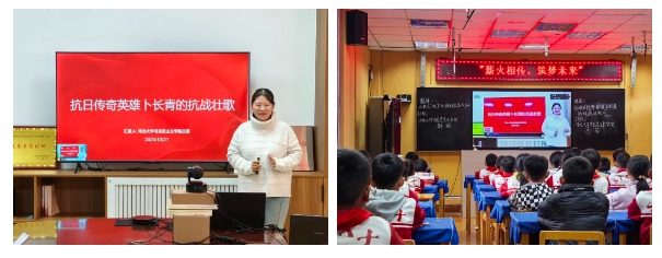 在纪念中国人民抗日战争暨世界反法西斯战争胜利80周年之际,为弘扬伟大抗战精神,助力西部思想政治教育,推动“大中小学思政一体化建设”走深走实,2025年10月22日河北大学马克思主义学院联合研究生支教团通过线上形式在贵州省盘州市红果街道沙陀小学开展了新质青年说抗战精神专题宣讲活动。