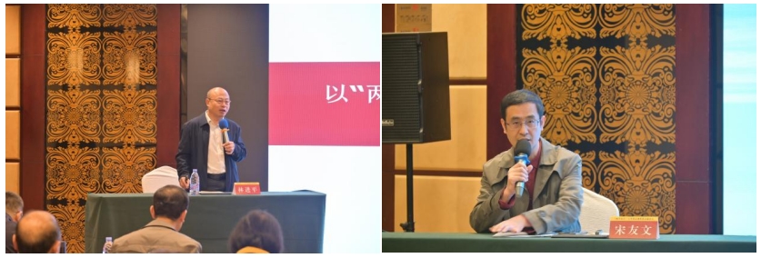 中山大学文化强国研究院执行院长、教授、博士生导师林进平;中国人民大学马克思主义学院副院长、习近平新时代中国特色社会主义思想研究院副院长、教授、博士生导师宋友文作主旨报告,围绕中华优秀传统文化现代化、习近平文化思想体系化等主题进行深入阐释。