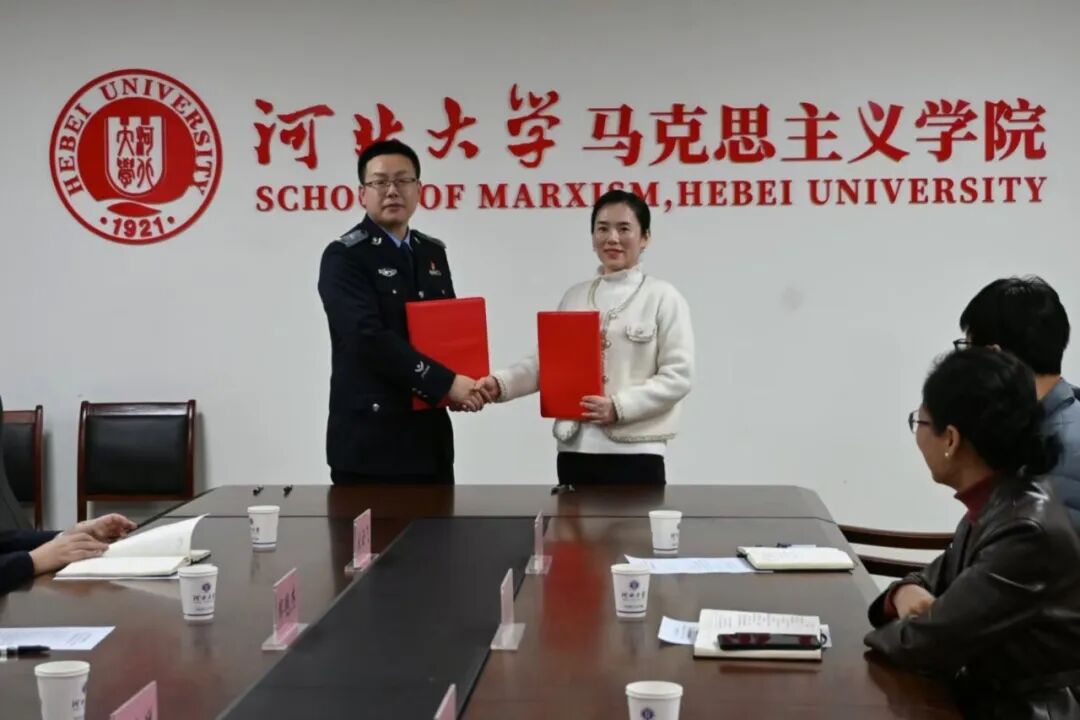 为深入贯彻党的二十届四中全会精神,贯彻落实习近平新时代中国特色社会主义思想,深化高校共青团改革,2025年12月12日,我院与中央司法警官学院信息管理系“红研润初心・藏蓝护征程”团建联建签约仪式于河北大学奋学楼举行。河北大学团委书记白金、马克思主义学院党委书记郑艳菊,中央司法警官学院团委副书记郝艳杰、信息管理系党委书记刘文洋出席仪式,双方学院团委书记及师生代表30余人参加仪式,活动由河北大学马克思主义学院团委书记关惠肇主持。