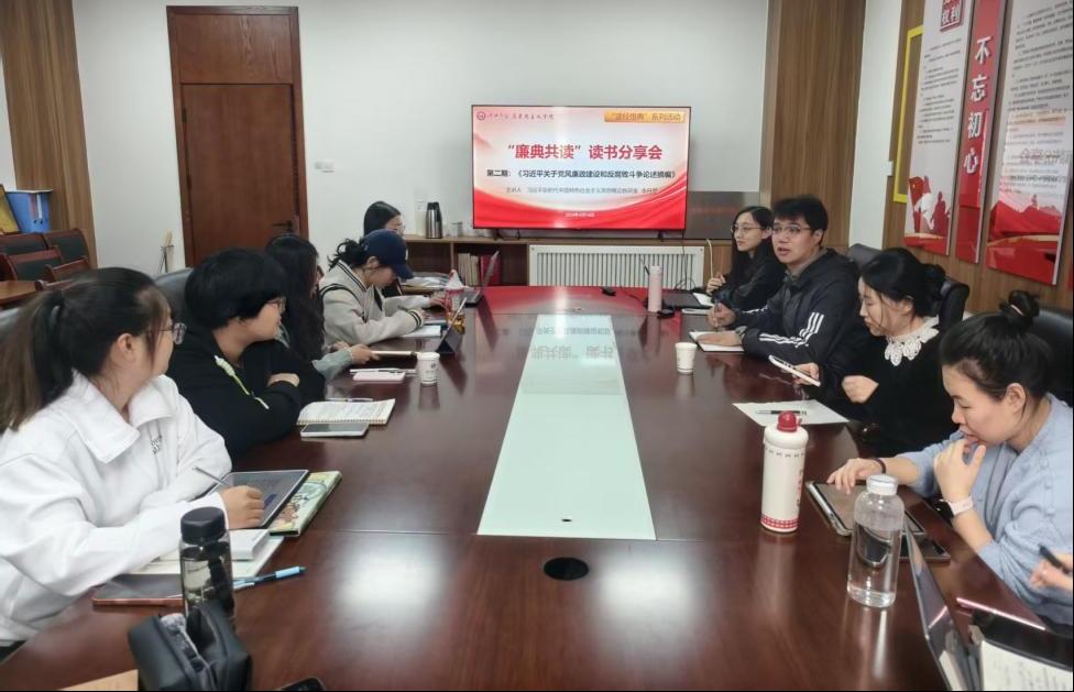 春风拂卷,廉韵沁心。4月14日上午,我院第二期“廉典共读”读书分享会在奋学楼105会议室成功举办。本期活动聚焦全面从严治党主题,以习近平总书记的重要著作《习近平关于党风廉政建设和反腐败斗争论述摘编》为研读文本,旨在引导青年学子夯实清正廉洁思想根基,深刻领悟新时代党的建设新的伟大工程的深刻内涵。由习近平新时代中国特色社会主义思想概论教研室李丹梦老师主讲,专职组织员樊向前主持。
