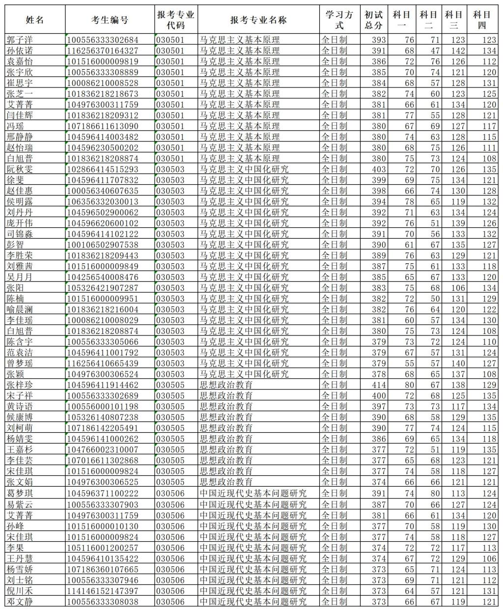 经我院研究生招生复试工作领导小组研究决定,将于4月8日下午17:00开始进行面试模拟测试,4月9日上午8:30开始对马克思主义基本原理专业、马克思主义中国化研究专业、思想政治教育专业、中国近现代史基本问题研究专业调剂考生进行面试。复试名单如下: