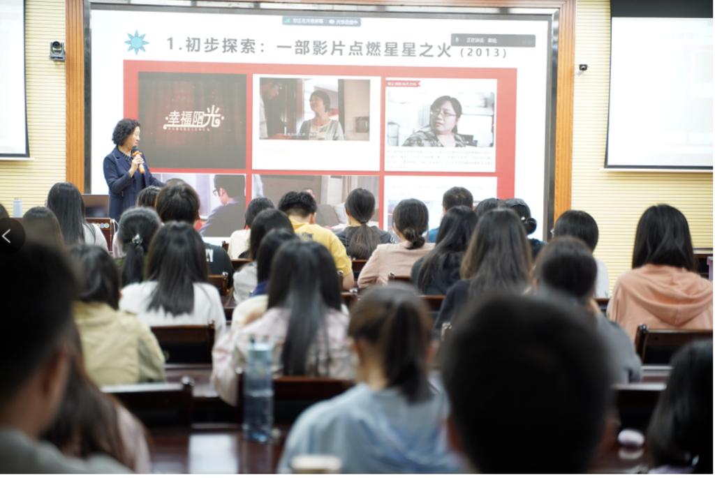 再次,柴教授的博士生姜旭、硕士生肖敬寒、本科生刘仕茂分别结合奋斗幸福观的思想意涵、“幸福微影社”的工作经历以及创作微电影《西淀灯火》为例分享了参与微电影教学理论与实践的幸福感,深刻体悟出“幸福都是奋斗出来的”。