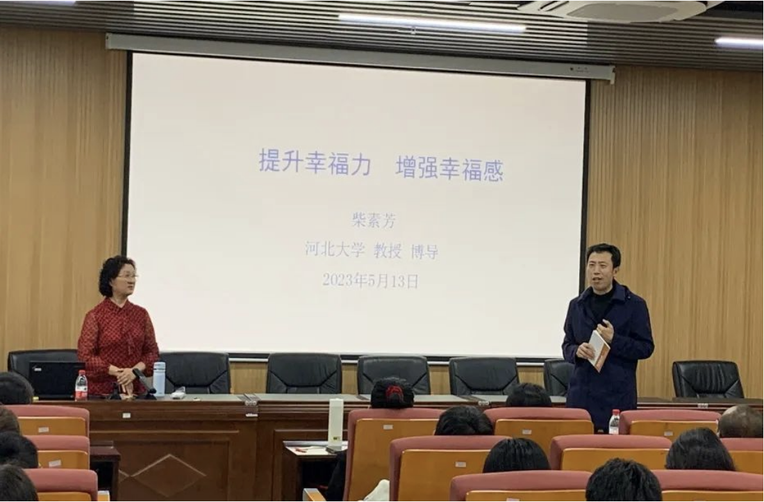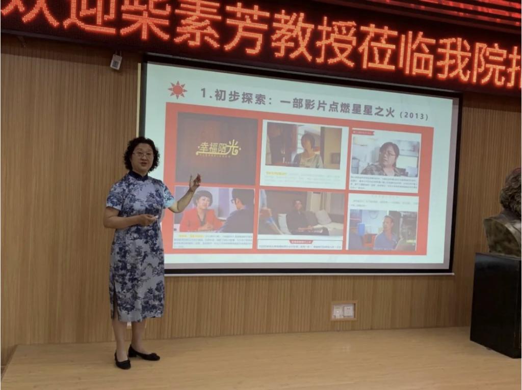 再次,在下午的专题报告环节,柴素芳教授以《提升幸福力增强幸福感》为题进行授课。柴教授以马克思主义幸福观为指导,结合她带领团队开展思政课微电影实践教学的真实经历,从提升认知幸福的能力、创造幸福的能力、体验幸福的能力和传递幸福的能力等方面进行引领,为与会师生声情并茂地讲授了一堂幸福课。柴教授的博士生姜旭、硕士生肖敬寒、本科生刘仕茂分别结合自身经历、“幸福微影社”的成长过程以及创作微电影《西淀灯火》为例分享了参与微电影教学理论与实践的幸福感,深刻体悟出“幸福都是奋斗出来的”。