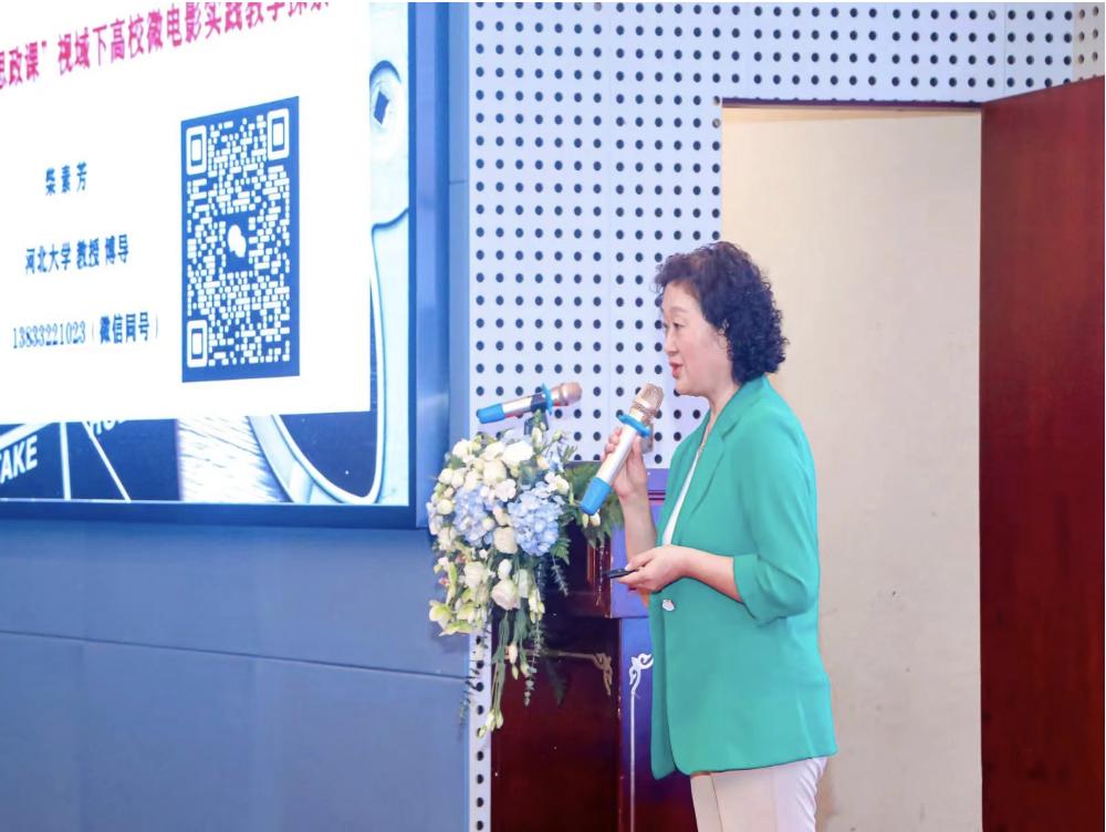再次,我校柴素芳教授作为最佳创意奖获得者领奖并分享获奖感言,她指出,获奖作品《西淀灯火》是在习近平总书记指导雄安新区建设的大背景下制作完成的,体现了革命精神的代代相传。她围绕“幸福都是奋斗出来的”“奋斗幸福离不开创新”“奋斗本身就是幸福、新时代是奋斗者的时代”主题,分享了我校思政课教师十年间指导4万多名大学生拍摄7000多部微电影的幸福体验,讲述了她与首部微电影《幸福阳光》中男一号扮演者窦星辰的感人的师承故事:十年来,窦星辰从我校本硕博学生转变为河北农大思政课教师,从一名演员转变为本次大赛一等奖《蛋愿》的指导老师!这就是我校思政课微电影实践教学改革的最大成果!