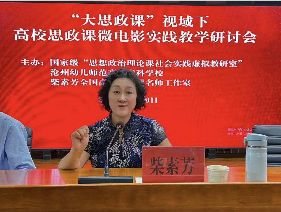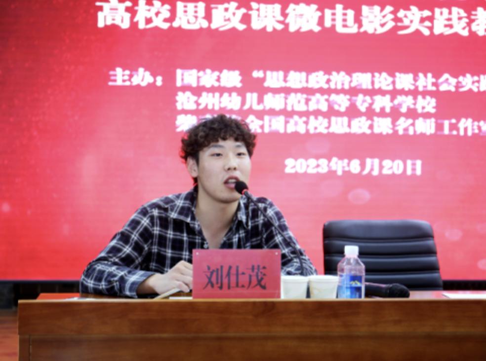 再次,与会师生围绕“思政课微电影实践教学”展开专题研讨。柴素芳教授以《“大思政课”视域下高校思政课微电影实践教学》为题做主旨发言。她解读了“大思政课”的深刻内涵,梳理了河北大学思政课实践教学的方式变迁,介绍了10年来河北大学思政课教师指导4万多名学生拍摄7000多部微电影的丰厚成果。随后,“幸福微影社”两任社长郭宏达、肖敬寒结合在“幸福微影社”和“思想政治理论课社会实践虚拟教研室”的工作经历,分享了参与河北大学思政课微电影教学改革的成长与收获。副社长刘仕茂分享了关于微电影创作的经验技巧及其导演作品《西淀灯火》的拍摄历程和育人理念,并对沧州幼专微电影参赛作品提出指导意见。