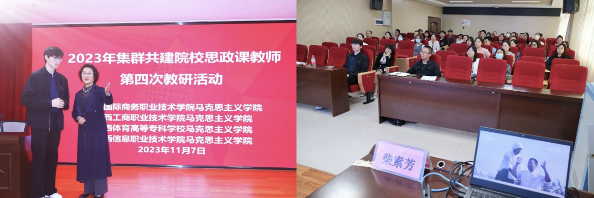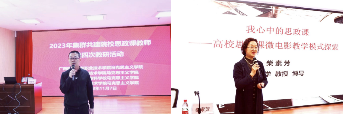 为深入贯彻党的二十大精神,推动学习贯彻习近平新时代中国特色社会主义思想主题教育扎实开展,认真落实习近平总书记关于“大思政课”建设的重要讲话精神,进一步推动新时代高校思政课改革创新,2023年11月6日—9日,国家级“思想政治理论课社会实践虚拟教研室”牵头人、河北大学马克思主义学院博士生导师柴素芳教授应邀到广西工业职业技术学院、广西国际商务职业技术学院、广西建设职业技术学院开展教研活动。本次教研活动的突出特点是:三所学校马克思主义学院举办的活动均与“2023年集群共建院校思政课教师教研活动”紧密结合,来自广西金融职业技术学院、广西农业工程职业技术学院、广西工商职业技术学院、广西体育高等专科学校、广西信息职业技术学院等多所高职高专马克思主义学院负责人、教师代表也参加了本次活动。