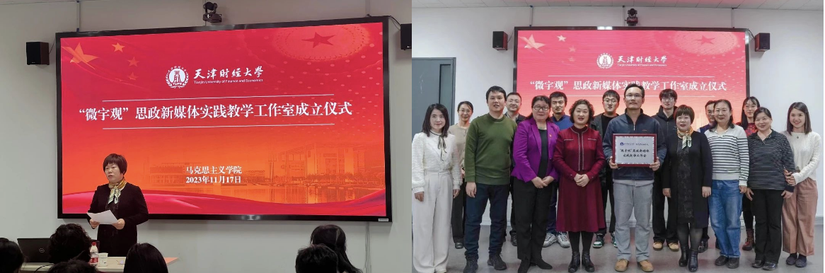 11月17日下午,天津财经大学马克思主义学院举办微电影实践教学名师讲座暨“微宇观”思政新媒体实践教学工作室揭牌仪式。柴素芳教授一行三人、学院教师代表及马克思主义理论、新闻传播学等专业研究生、本科生参加。杨书文院长主持会议。