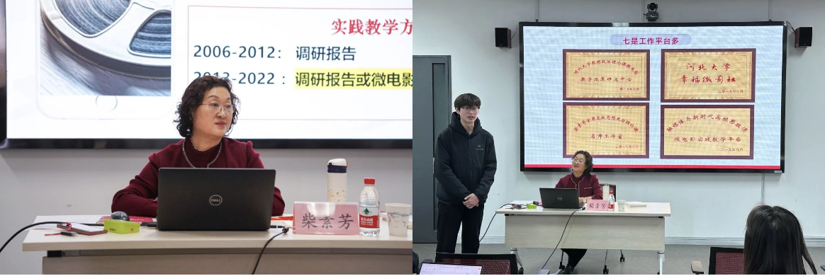 为深入贯彻党的二十大精神,推动学习贯彻习近平新时代中国特色社会主义思想主题教育扎实开展,认真落实习近平总书记关于“大思政课”建设的重要讲话精神,进一步推动新时代高校思政课改革创新,11月17日,国家级“思想政治理论课社会实践虚拟教研室”牵头人、河北大学马克思主义学院博士生导师柴素芳教授应邀到天津财经大学开展教研活动。博士生姜旭、硕士生肖敬寒同行。