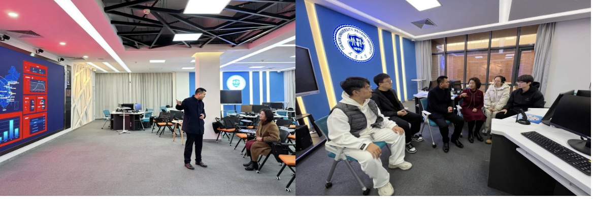 其次,柴教授一行三人到该校思政课虚拟仿真体验教学中心参观交流。王磊副教授介绍了该校虚拟仿真中心的基本情况:“感悟和把握《共产党宣言》的真理力量虚拟仿真实验”获评首批国家级虚拟仿真一流本科课程,2021年获评全国高校思政课虚拟仿真体验教学中心 ,2022年获评天津市学校思政课虚拟仿真技术中心。“中心”围绕“铸魂育人、虚实结合、共建共享、示范引领”的目标定位,通过教学、研究、培训、交流、示范、推广等方式,推动人工智能等现代信息技术在思政课教学中的应用,推进思政课改革创新。随后,他带领柴教授观赏了“全国大学生红色全景资源创意展示大赛”中收集的来自全国21个省(市、自治区)69所高校173支参赛队伍提交的参赛作品。参赛选手使用全景相机拍摄博物馆、纪念馆、革命旧址遗址、历史文化遗产、烈士陵园、名人故居、大国重器等,多角度讲述场景中的中国共产党人故事、革命先烈故事、民族英雄故事、科学家故事、大国工匠故事等。